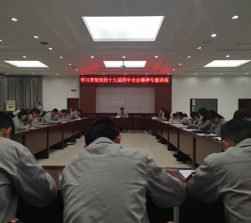 | 為深入學習貫徹黨的十九屆四中全會精神,引導干部職工深刻領會全會確定的主要任務、奮斗目標和重大意義,切實把思想統一到全會的精神上來,凝聚推動公司發展的智慧力量,公司成立由班子成員組成的十九屆四中全會精神宣講團,赴各單位進行宣講。 11月26日下午,公司黨委書記、董事長高曉兵深入公司最大單位--鋁鎂合金分公司,向基層黨員干部群眾宣講。他在講話中指出,學習宣傳十九屆四中全會精神是當前和今后一個時期的重要政治任務,對基層黨組織來講,就是要在不折不扣執行全會決定的前提下,充分領會全會精神實質,結合工作實際不斷探索完善工作機制,創新工作體制、工作理念,在基建轉生產、銅川鋁業公司和鋁鎂合金分公司管理體系相融合的過程中,大家同心協力,奮力進取,用全會精神指導我們工作實踐,不斷為公司高質量高效益發展做出自己的貢獻。 11月27日下午,公司黨委委員、副總經理、總工程師元勝利赴陽極分公司進行宣講。他指出,要把學習宣傳貫徹全會精神與公司各項重點工作結合起來,協調布置、統籌推進。堅持與完成全年目標任務相結合,補短板、強弱項,確保全面完成全年目標任務,為明年開局打好基礎。 11月27日下午,公司黨委委員、總會計師韋化鵬為分管部門、聯系點單位集中宣講,強調了全會是我們黨站在“兩個一百年”奮斗目標歷史交匯點上召開的一次十分重要的會議。全會作出堅持和完善中國特色社會主義制度、推進國家治理體系和治理能力現代化若干重大問題的決定,是黨中央從戰略和全局的高度作出的重大決策,對推動全黨全國各族人民堅定制度自信,發揮我國國家制度和國家治理體系顯著優勢,實現“兩個一百年”奮斗目標和中華民族偉大復興的中國夢具有重大而深遠的意義。 11月29日上午,集團公司全會精神宣講團成員、公司黨委副書記、紀委書記李書平為機關全體管理人員宣講,要求公司黨員領導干部要結合全會精神,在工作中做到:堅決擁護中央決定,領會黨完善國家治理能力和治理體系的決心和毅力,把斗爭進行到底。認真貫徹全會精神,學習落實《中共中央關于堅持和完善中國特色社會主義制度、推進國家治理體系和治理能力現代化若干重大問題的決定》要求,確保公司能夠按照現代企業制度的要求,做強做優。公司“強黨建、嚴紀律、促發展”專項整治成果要鞏固,“兩個責任”要落實,結合全會精神聚精會神做好黨建工作。 12月4日上午,公司常務副總寧文衛在礦業公司宣講,從“充分認識堅持和完善中國特色社會主義制度、推進國家治理體系和治理能力現代化的重大意義”、“深刻領會中國特色社會主義制度和國家治理體系的顯著優勢,堅定中國特色社會主義制度自信”、“準確把握堅持和完善中國特色社會主義制度、推進國家治理體系和治理能力現代化的總體要求、總體目標和重點任務”“加強黨的領導,確保全會確定的各項目標任務全面落實到位”等方面對全會精神進行系統闡述和深入解讀。 |