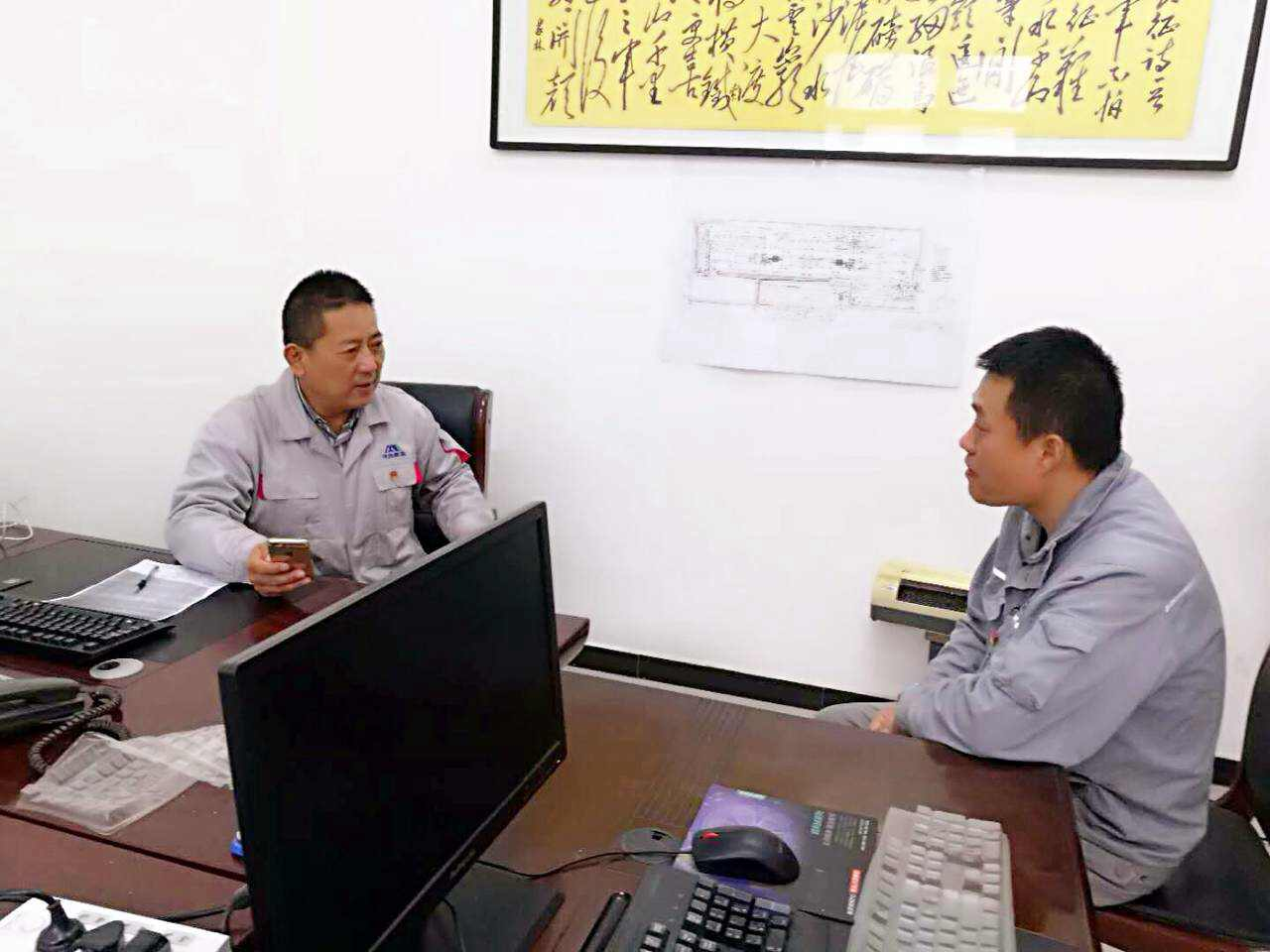 “小劉,有啥難事給我說,我盡最大能力幫你解決,我解決不了的我去找組織幫你解決,放心!不要有啥心理負擔,放下包袱好好干工作……”小劉因為家庭原因最近工作不在狀態,細心的“老頭”看到后正在找小劉談話。