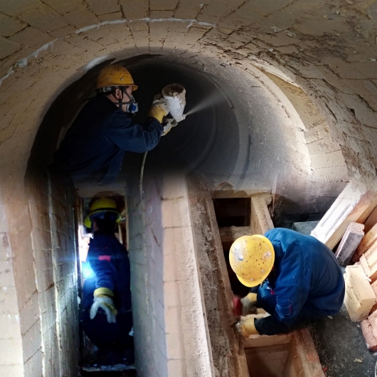 針對該問題,車間組織班組長、技術骨干討論研究,最終確定采用火道內襯縫隙加塞耐火巖棉,表面噴涂掛漿的維護方案。維護過程中,受空間限制,作業(yè)人員需半蹲側身進入端頭火道入口進行作業(yè),在完成安全技術兩交底后,維護人員齊裝上陣,兩兩一組,累了就互換角色,輪番交替進行。為了保證維護質量,大家還利用休息之余,交流經驗方法,探索出先將膠泥涂抹1毫米,再噴涂兩次后效果會更佳的修復方法。經過護爐人員的共同努力,僅用七天時間就完成了聯通火道和一廠房1#8#爐室邊火道側墻的維護工作。調溫工連續(xù)七天對升溫曲線數據進行記錄跟蹤,成效顯著,火道負壓由維修前的147Pa上升到了194Pa