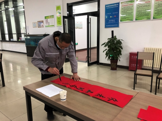 古往今來,春節貼春聯,是對新年的憧憬與盼望,更對未來的向往與期許。此次活動中,書法愛好者們筆法秀逸、行云流水,一展自我風采。一幅幅紅紅的春聯,對仗工整、清新秀麗;一張張喜慶的福字,筆勢雄奇、蒼勁有力。吸引了眾多聞訊而來的職工,大家一邊欣賞著已書寫完成的對聯,一邊挑選著自己心儀的對聯內容。有的職工還邀請中意的“書法大師”為自己量身定制一副獨一無二的春聯內容,現場氣氛歡樂祥和。