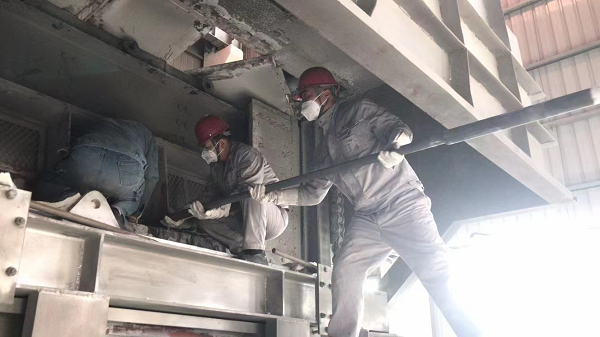 鋁鎂合金分公司檢修車間檢修二班承擔(dān)著鋁鎂合金供料車間、鑄造車間、電解槽控系統(tǒng)大小設(shè)備的維護(hù)、檢修任務(wù)。連續(xù)高溫天氣的“炙熱模式”使車間的鋼筋廠房變成了“大蒸爐”。在這樣的條件下,要確保每臺設(shè)備良好運行,就更得細(xì)化工作、強(qiáng)化責(zé)任,緊繃“安全弦”。 8月31日下午4:50分,在大家即將結(jié)束忙碌了一天的工作準(zhǔn)備交接班時,檢修二班接到在崗職工延遲下班的通知。由于2號混合爐爐溫低于650攝氏度,經(jīng)現(xiàn)場確認(rèn)需要進(jìn)行硅碳棒更換作業(yè),只見他們熟練的整理工器具、穿戴勞保,迅速趕到現(xiàn)場與鑄造工密切配合,斷電、拉警戒線、搭建工作平臺……他們在墊著木板的爐門排煙罩內(nèi)工作了近三個小時,將一根根硅碳棒用5米的角鐵架送入爐膛,汗水浸濕了他們的全身,油污沾滿了他們的雙手,廠房周圍的設(shè)備轟鳴聲干擾不到他們,爐里散發(fā)的滾滾熱浪趕不走他們,因為他們心中有著無限力量。 高溫下⼀幕幕忙碌的身影讓我肅然起敬,這就是三伏天維修工的日常縮影,他們揮汗如雨,堅守崗位,不言退縮,在自己平凡的崗位上接受著高溫的考驗和洗禮,為車間的安全運轉(zhuǎn)保駕護(hù)航,用汗水和智慧詮釋著愛崗敬業(yè)的責(zé)任與擔(dān)當(dāng)。 |